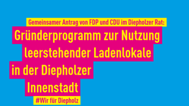 02.05.2021 Gemeinsamer Antrag von FDP und CDU: Gründerprogramm zur Nutzung leerstehender Ladenlokale in der Diepholzer Innenstadt Mehr dazu